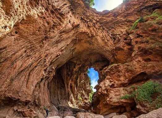 À seulement 30 km d'Azilal, le Pont naturel d'Imi n'Ifri est une curiosité géologique exceptionnelle classée Site d'Intérêt Biologique et Écologique (SIBE). En tamazight, "Imi n'Ifri" signifie "la bouche de la grotte" — un nom évocateur pour cette arche monumentale sculptée par l'érosion millénaire de l'oued Tisslit dans le calcaire.