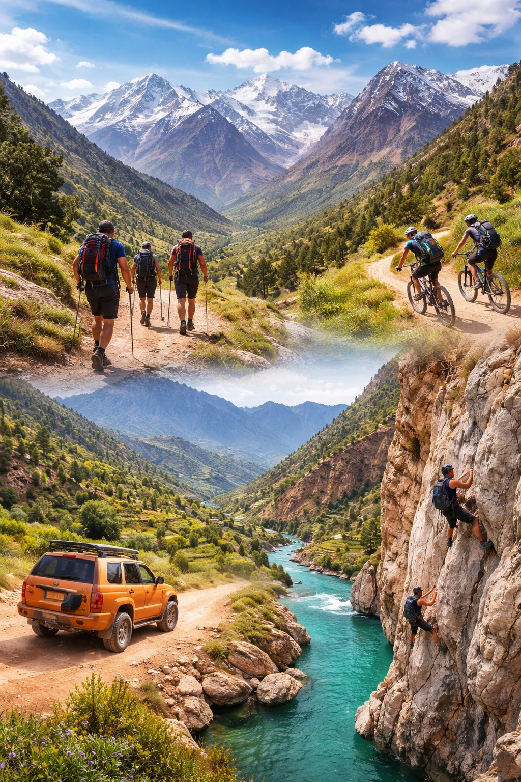 Au-delà de la marche, la région est un terrain de jeu grandeur nature pour les amateurs de sports outdoor : VTT sur les pistes sinueuses, escalade sur les parois calcaires, canyoning dans les gorges ou encore excursions en 4x4 pour découvrir les villages berbères les plus reculés.