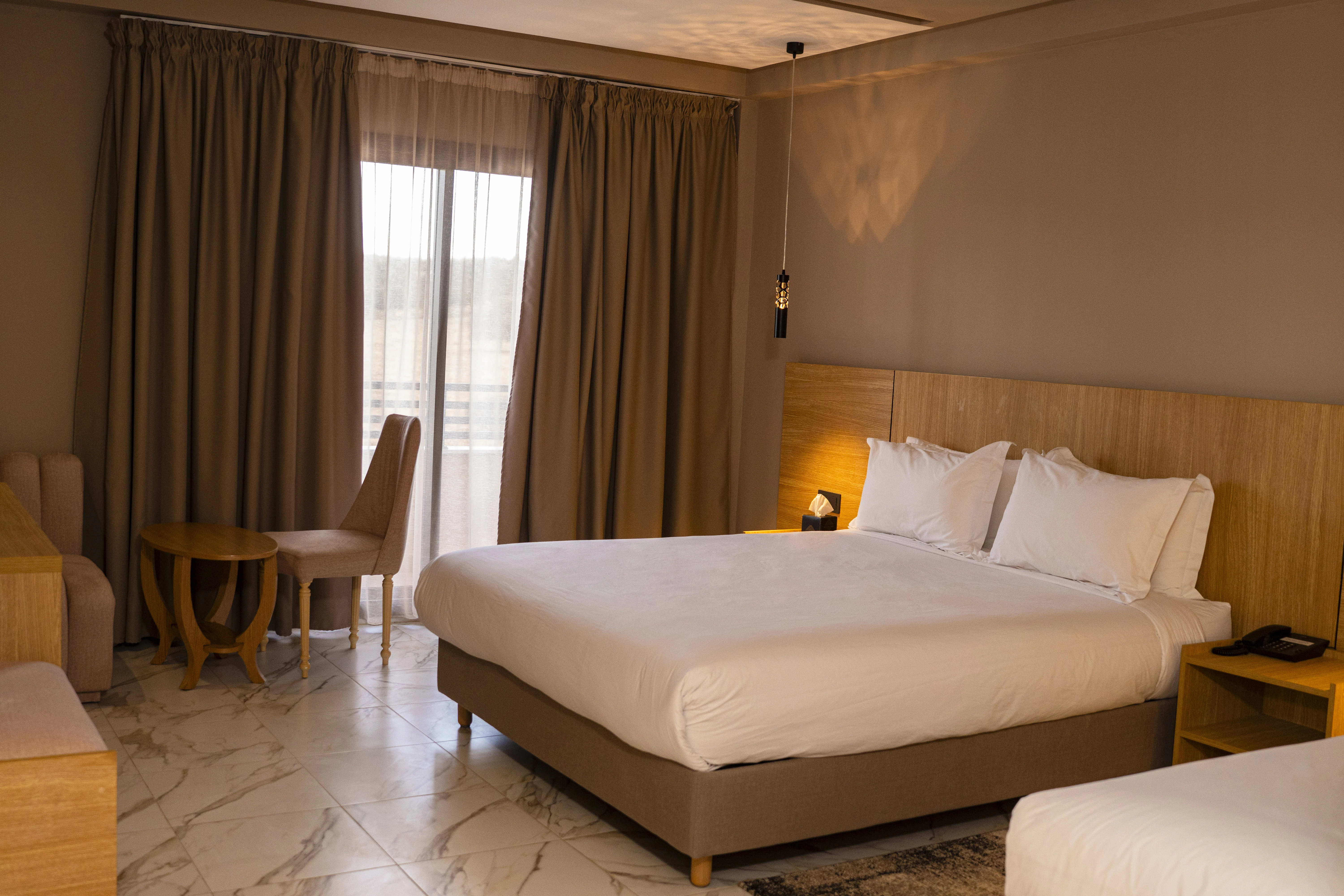 Voyagez en famille sans compromis sur l'espace et le confort avec notre Chambre Familiale Supérieure. Avec ses 39 m² généreux, elle accueille aisément 4 à 5 personnes dans un cadre élégant et chaleureux. Les différents espaces de couchage garantissent l'intimité de chacun tout en favorisant la convivialité.