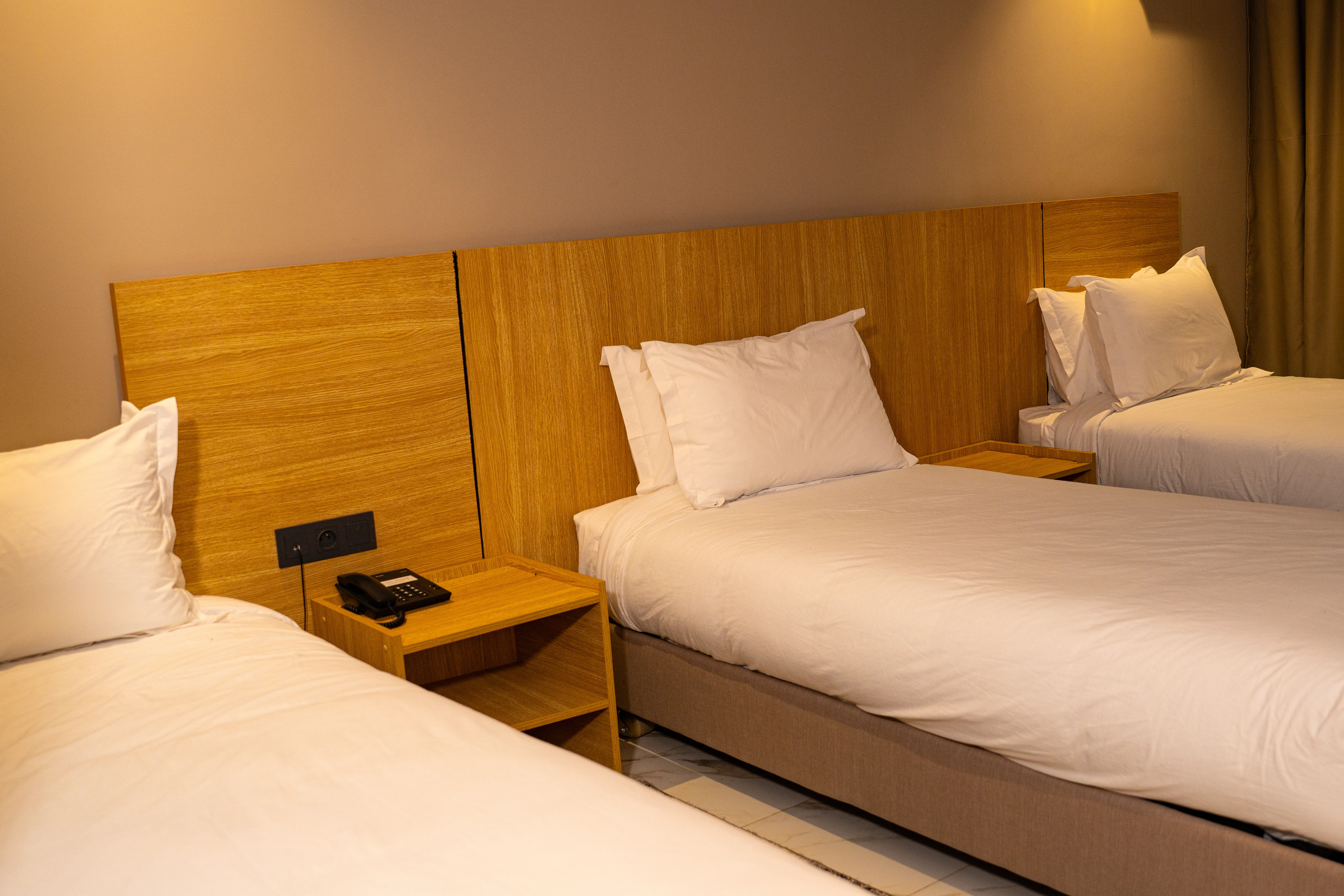 Notre Chambre Triple Standard est la solution idéale pour les petits groupes d'amis ou les familles. Avec ses 33–36 m² bien agencés, elle offre trois lits confortables dans un espace lumineux et accueillant, décoré avec des touches d'artisanat berbère local.