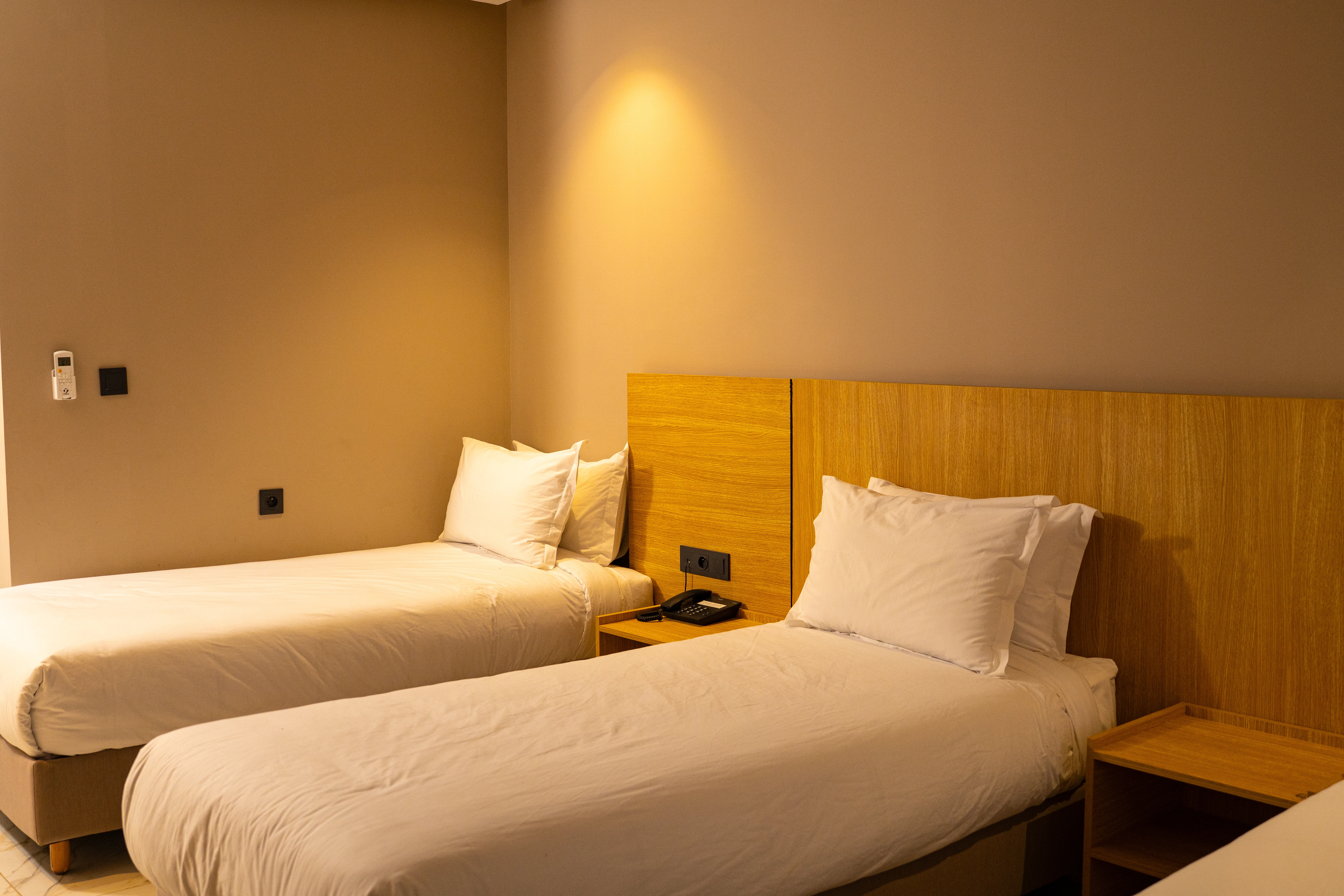 Notre Chambre Triple Standard est la solution idéale pour les petits groupes d'amis ou les familles. Avec ses 33–36 m² bien agencés, elle offre trois lits confortables dans un espace lumineux et accueillant, décoré avec des touches d'artisanat berbère local.